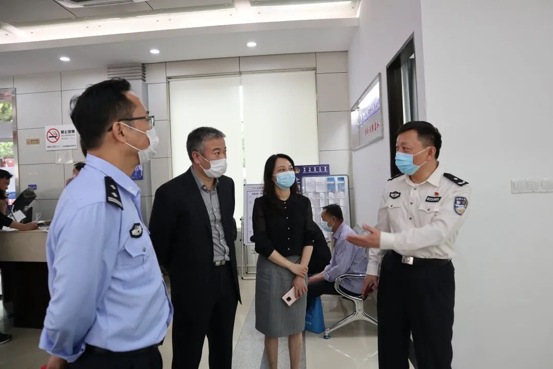 徐汇区公安局副局长陈列中、斜土路街道办事处主任周莹、街道党工委副书记张利东等来到事务受理中心检查入驻第一天“综合窗口”业务办理情况。在办事大厅听取首日居民办事介绍后,陈列中一行又前往控制中心、机房等场所实地查看运作情况。