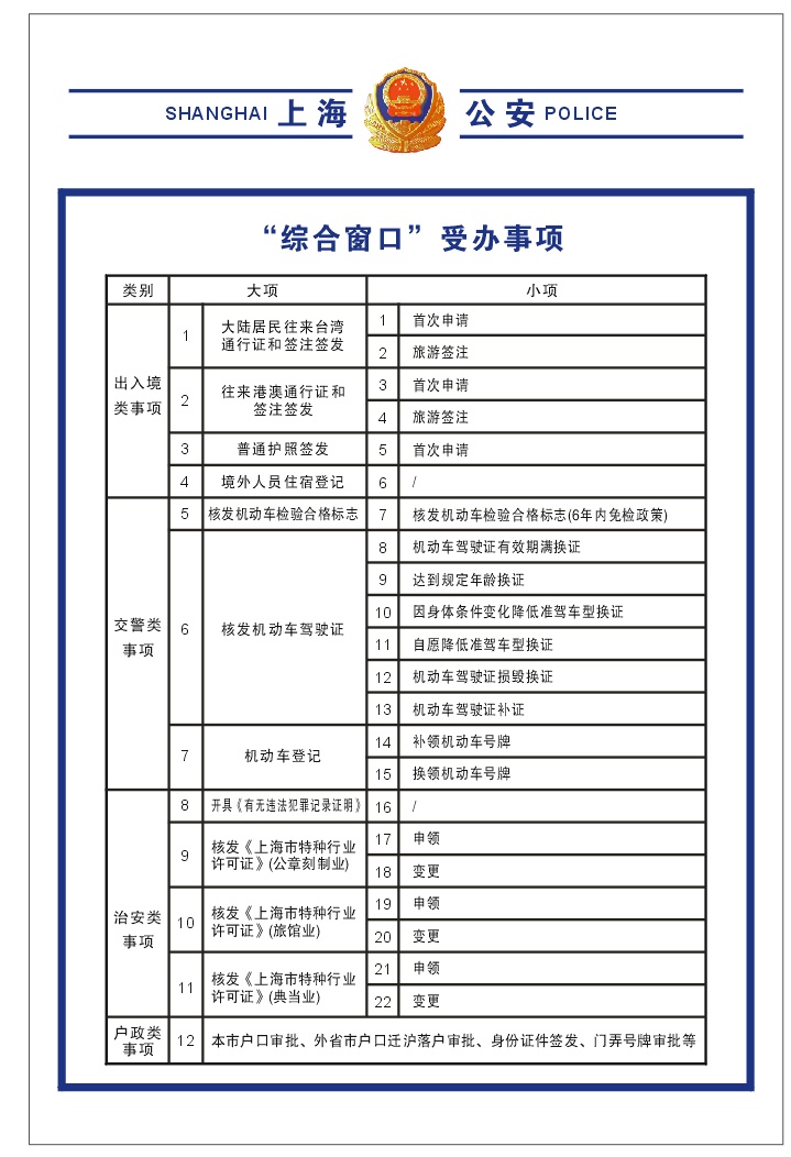 小兔提醒您:此次进驻的派出所“综合窗口”涉及户政类、治安类、交通类及出入境类共计4大类、23项受办事项。
