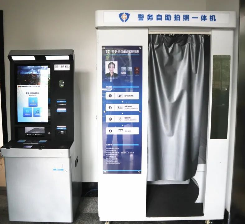 在“警务一体机”上,居民们可以自助办理出入境服务、身份证业务以及车驾管业务等,若有拍照需求,旁边的“警务自助拍照一体机”也可以轻松解决。
