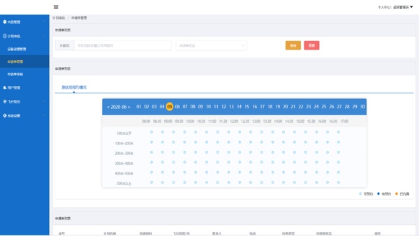 在平台上可以实现飞行计划的申请接收及审批流程,为临港飞行服务中心提供无人机静态数据、地理信息、空域信息、气象数据的存储,同时向用户提供飞行气象服务,发送天气报告。