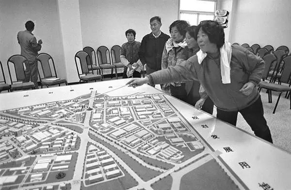 1993年1月,居民在看金桥出口加工区的规划模型。新华社 资料图