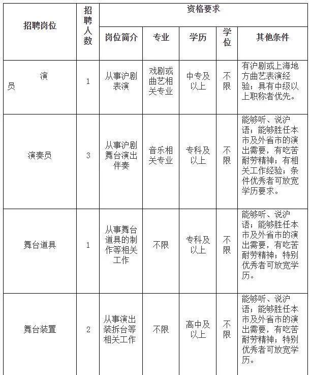 由上海沪剧院组织考察,主要考察应聘人员的思想政治素质、遵纪守法情况、道德品质和诚信记录等。