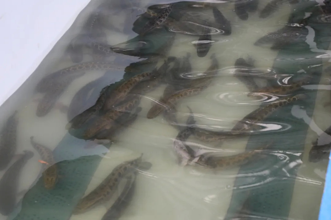 据上海财宇生态农业科技有限公司总经理李永权介绍,这些黑鱼都是“杂交乌鳢”,与市面上的黑鱼相比,提质续养后,肉质更嫩。
