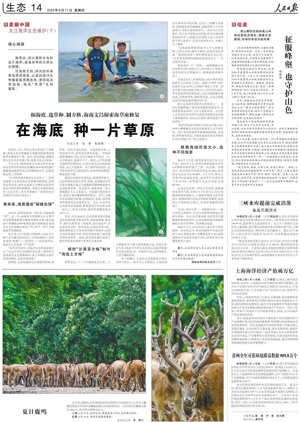 在海南文昌,研究团队探索海草床修复,众多的海洋生物重新获得栖息地、索饵场及育幼场,海底“荒漠”生机重现。