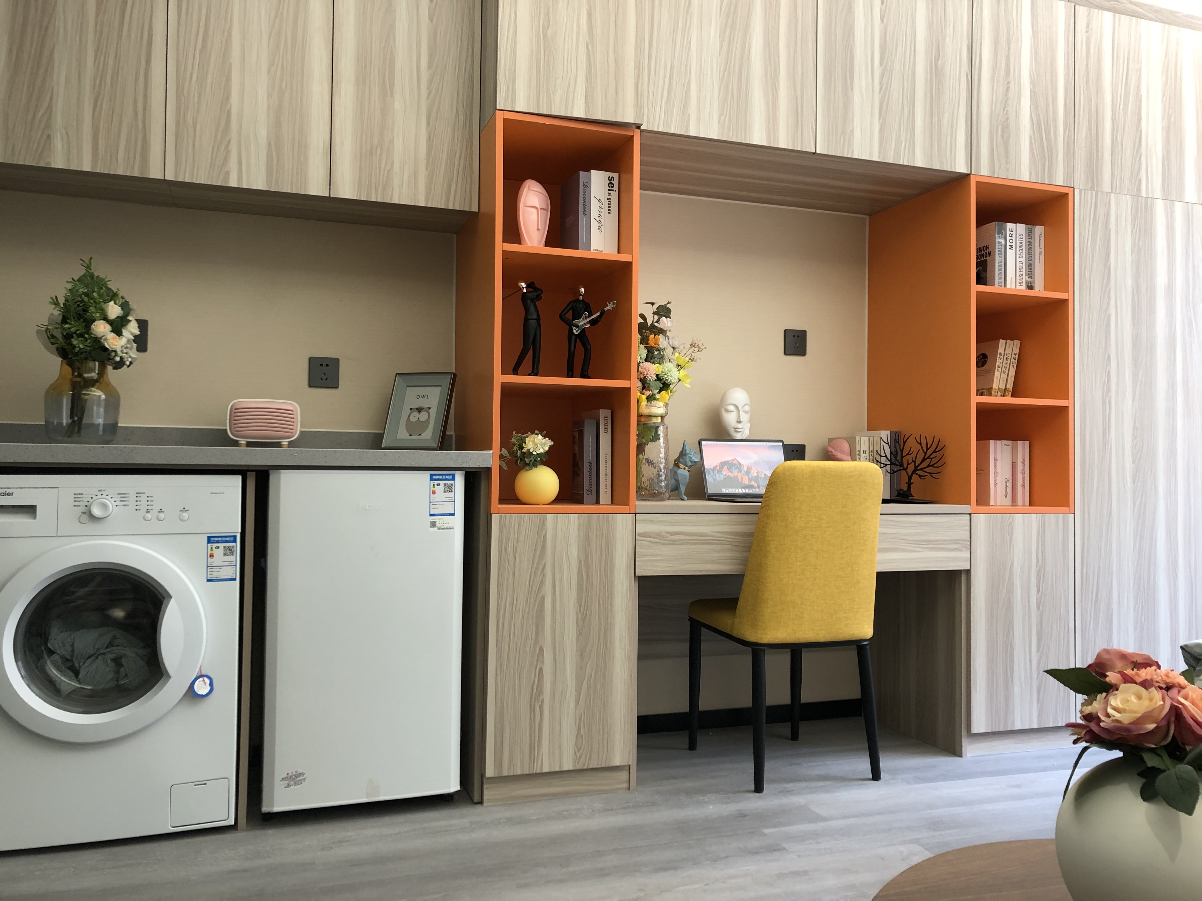 在受众定位上,“西部乐巢”聚焦于年轻白领群体。因此,在社区公共空间设置和服务上下足功夫。除了配备屋顶休闲花园、大堂书吧接待区、共享洗衣房、共享厨房餐厅、健身房、桌球室等活动空间外,还为住户提供了24小时管家式服务,对公寓内人员出入、智慧安防、停车服务做了全面细致管理。租客房间内则配置了一体化卫浴、洗衣机、冰箱、拥有大储物空间的定制家具,消防喷淋、烟感、电子门锁等安全设备也一应俱全