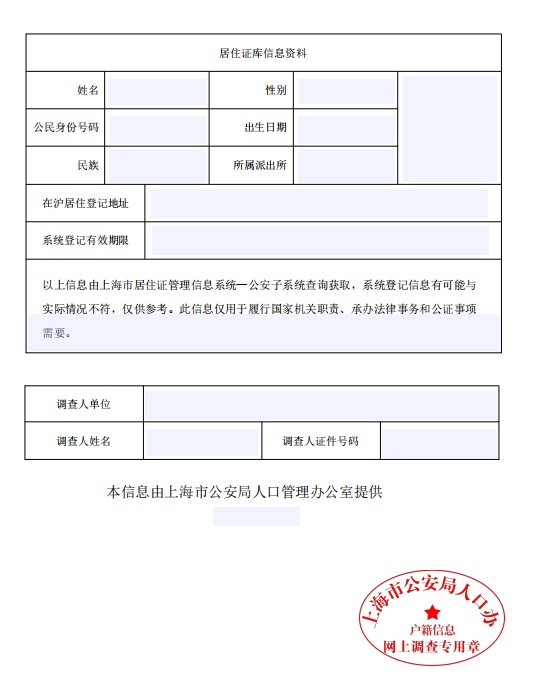 在沪居住信息,是指持有有效《上海市居住证》的被查询人在本市居住登记地址信息。