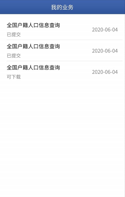 3.3提交后一日后可在“我的业务”模块,进行点击下载。