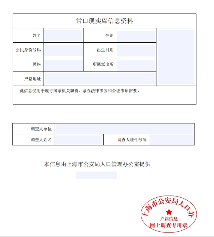 人口信息,是指包括被查询人的姓名、性别、民族、出生日期、常住户口所在地址、公民身份号码、照片、所属派出所等八项静态项目信息。