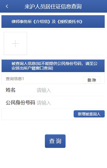 4.1律师上传律师事务所《介绍信》及《授权委托书》。律师知晓被查询人居住地所的,派出所一栏据实填写被查询人居住地所属派出所。律师不知晓被查询人居住地所的,派出所一栏填写“上海市公安局下辖派出所”。