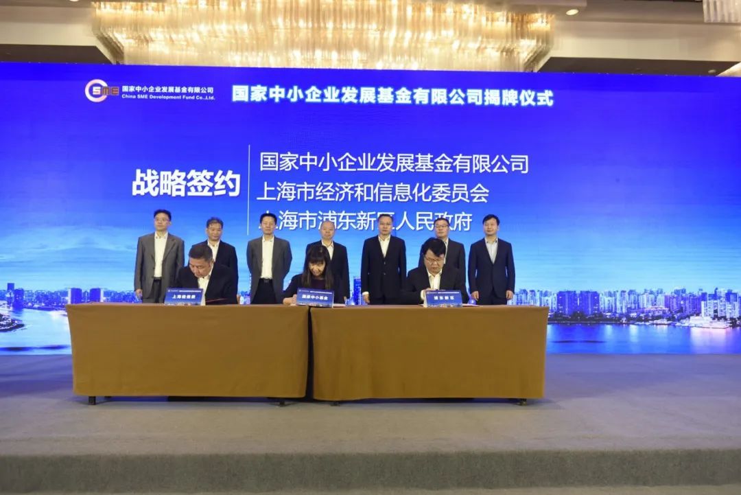 在揭牌仪式上,国家中小企业发展基金有限公司分别与上海证券交易所、上海市经济和信息化委员会和浦东新区人民政府签署了战略合作协议。工业和信息化部中小企业局主要负责同志就中小企业发展支持政策进行了解读。