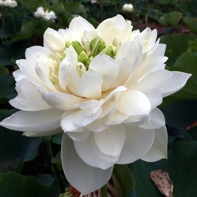 这是另一个新品种——早白雪,重瓣荷花,层层叠叠,优雅盛放。